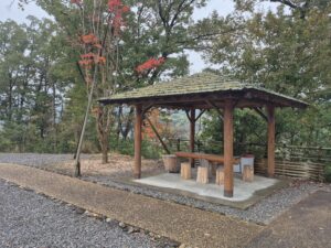今朝、ココロノオカ駐車場に設置している東屋を見ると